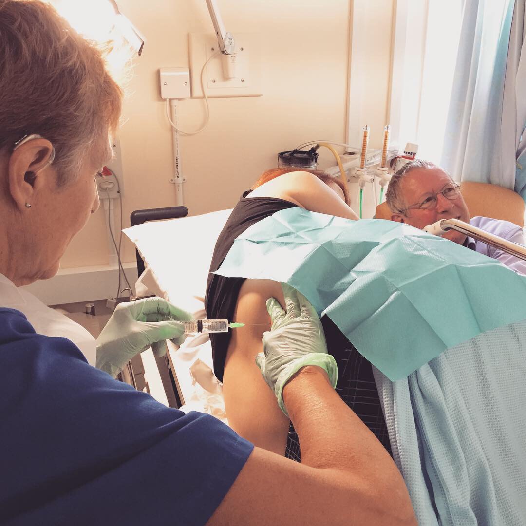 Of course, I asked my Mum to take pictures (whilst my lovely Dad did his best to keep me distracted!). Avert your eyes now if you’re particularly squeamish about needles or love handles (sorry!).