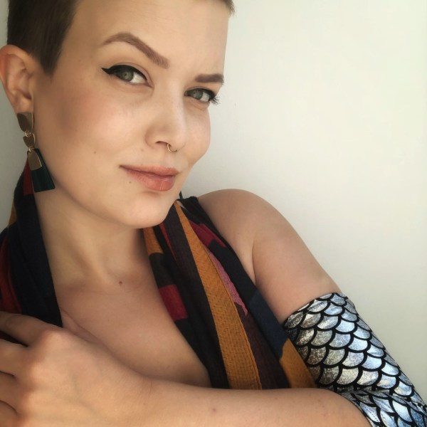 My mermaid scales PICC line cover is here and if it isn’t the most extra thing you’ve ever seen then I don’t know what to say.